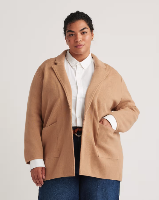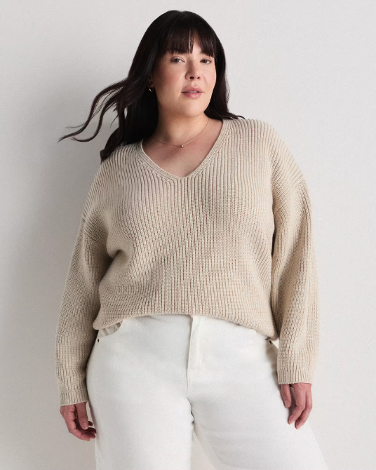No one does affordable luxury like Quince. Their plus size cashmere sweaters are timeless and comfortable pieces that will last you for plenty of winters to come.